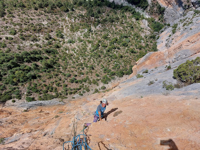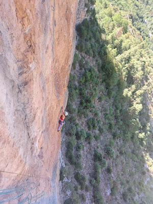 Un altre espectacle i de nou el festival del desplom. Amb bones xorreres, plaques verdonianes i sense descans de principi a fi. Una paret impressionant i molt recomanable a la fresca de l’estiu, ideal per culminar amb un banyet al riu. Em veig obligada a fer més A0s que la via anterior i potser per això no l’he puntuat amb 5 estel plus, tot i que, sens dubte, és una via excepcional. Casualitats de la vida fan que aquell dia tornem a coincidir a la mateixa paret, però a la distància, amb en Llullu i en Mateu.